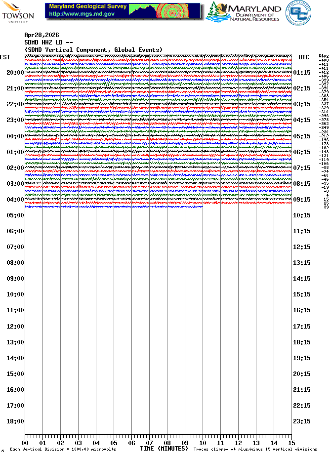 Soldier's Delight Station (SDMD) Helicorder Record
