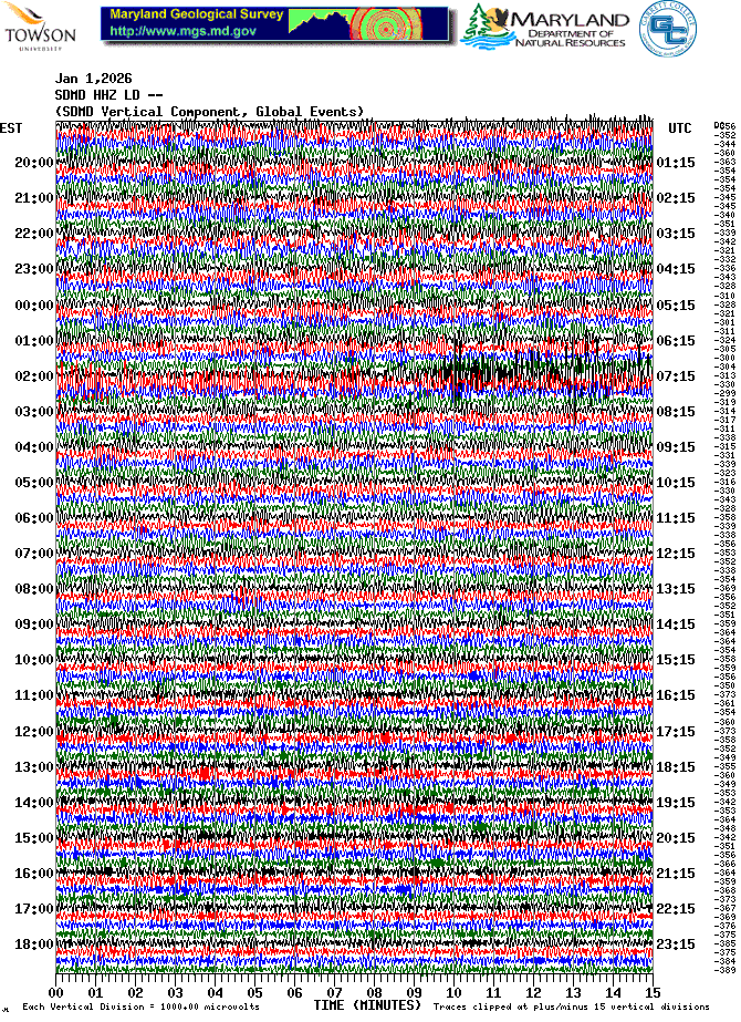 Soldier's Delight Station (SDMD) Helicorder Record